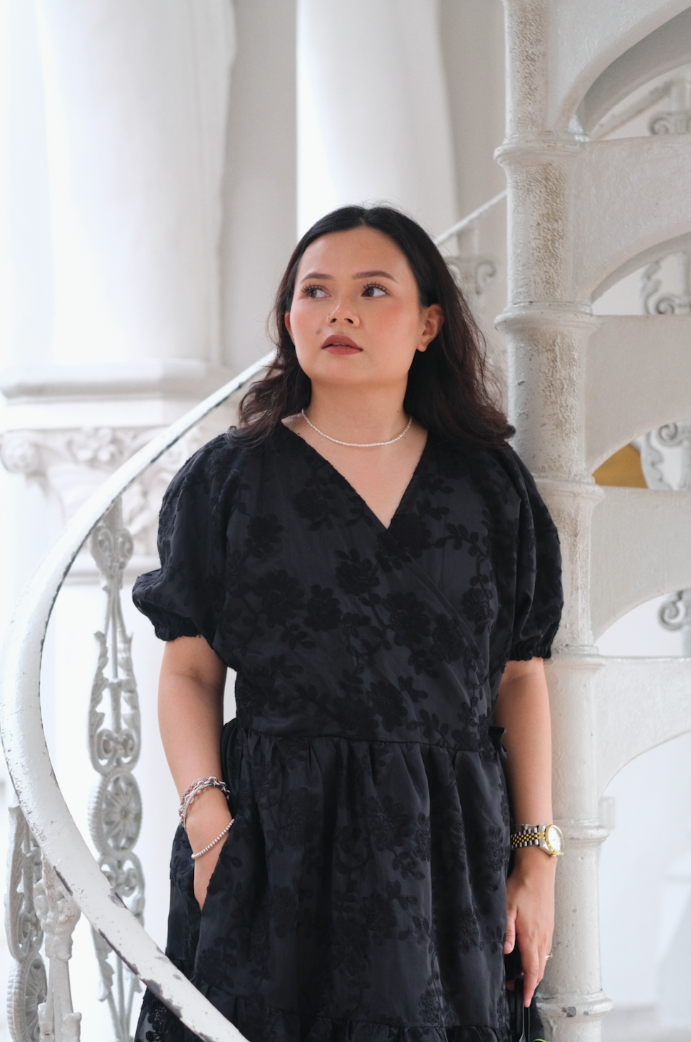 The Josephine Dress is a stunning Organza Lace tiered wrap dress. It features a graceful wrap design that accentuates your figure. The dress comes with a lining for added comfort. Available in two classic colors: black and cream. Choose the perfect hue to complement your style. This dress is a versatile addition to your wardrobe.