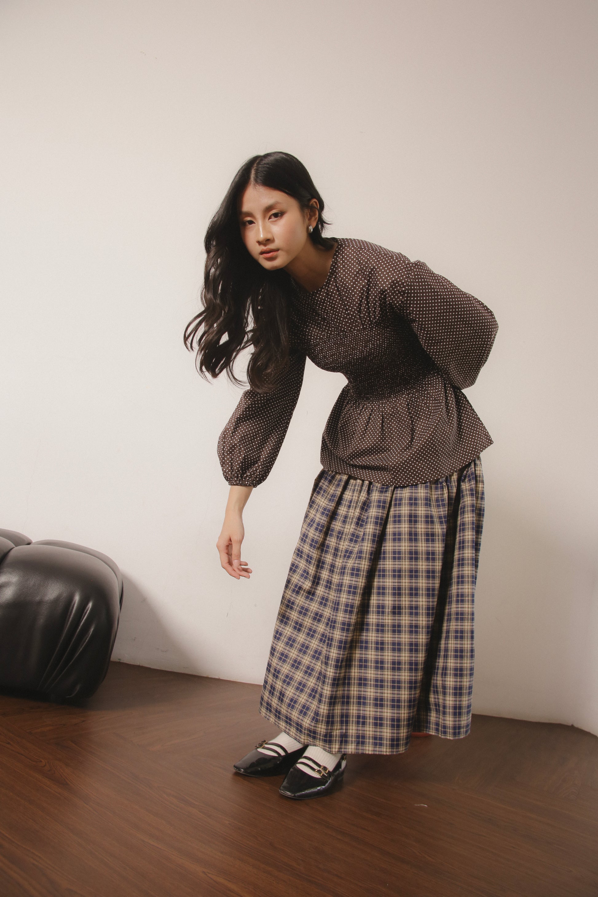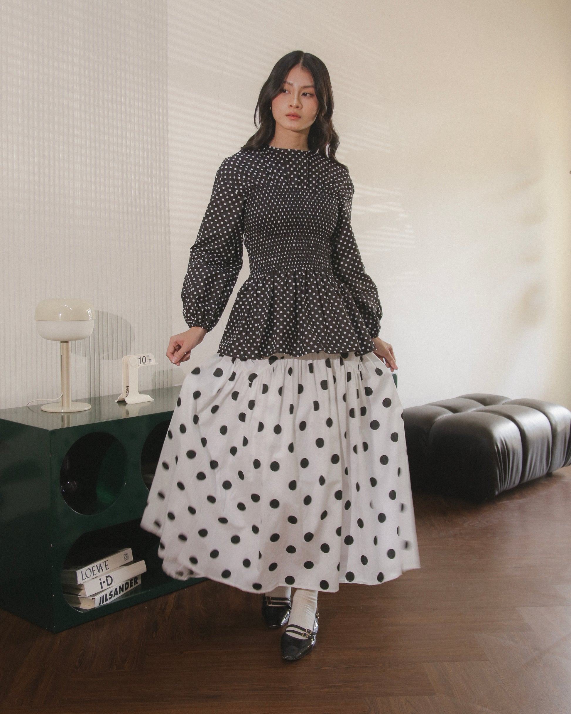 The Suzy Drop Waist Skirt stands out with its playful prints and gracefully flowing silhouette. Designed for comfort and ease, it features a stretchable waistband at the back that adapts to your shape, complemented by a concealed side zipper for effortless dressing. This skirt combines style and practicality, making it an elegant addition to your wardrobe for both casual and dressy occasions.